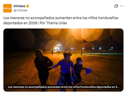 Las autoridades advierten que la migración infantil no acompañada continúa en aumento. De acuerdo con la organización COIPRODEN, desde 2014 hasta enero de 2026 más de 129 mil menores hondureños han sido deportados, lo que refleja la magnitud del fenómeno migratorio que afecta a niños y adolescentes del país.