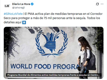 El Programa Mundial de Alimentos (PMA) de la Organización de las Naciones Unidas anunció la activación de medidas anticipatorias ante el riesgo de sequía en el Corredor Seco de Centroamérica, asociado a un posible fenómeno de El Niño. El objetivo es ayudar a las familias más vulnerables a prepararse antes de que ocurra una crisis alimentaria.