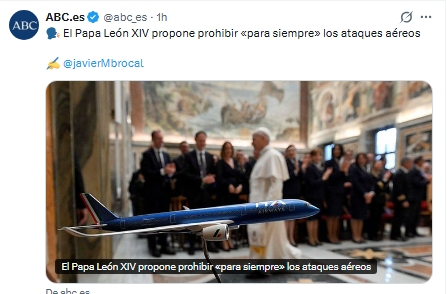 Papa León XIV condena el uso de aviones en la guerra y pide prohibir bombardeos