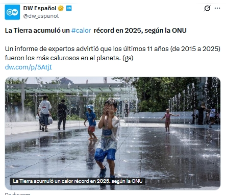 La Organización Meteorológica Mundial (OMM) informó que en 2025 la Tierra alcanzó niveles récord de calor acumulado, con posibles efectos durante cientos o miles de años. El secretario general de la ONU, António Guterres, advirtió que el planeta enfrenta una emergencia climática, con todos los indicadores en niveles críticos.