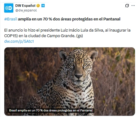 El presidente de Brasil, Luiz Inácio Lula da Silva, anunció la ampliación en un 70 % de dos zonas protegidas ubicadas en el Pantanal, considerado el humedal más grande del mundo.