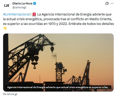 La Agencia Internacional de Energía (AIE) advirtió que la crisis energética global actual, derivada del conflicto en Oriente Medio entre Irán y Estados Unidos, es más grave que las registradas en 1970 y 2022.
