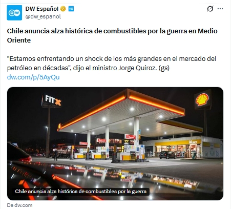 Chile anuncia alza histórica de combustibles por la guerra