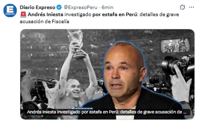 El exfutbolista español Andrés Iniesta, ícono del FC Barcelona y campeón mundial en 2010, fue acusado en Perú de presunta estafa agravada por su vínculo con eventos deportivos y artísticos que nunca se realizaron.