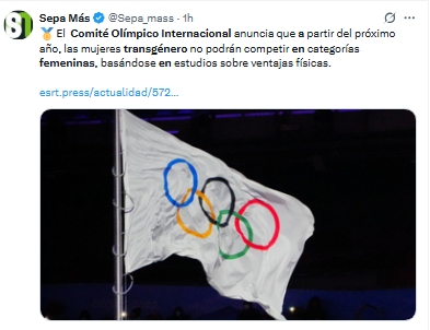 El Comité Olímpico Internacional (COI) prohibirá a inicios del próximo año la participación de mujeres transgénero en todas las competiciones femeninas, luego de que una revisión científica destacara las ventajas físicas que gozan estas personas por haber nacido varones.