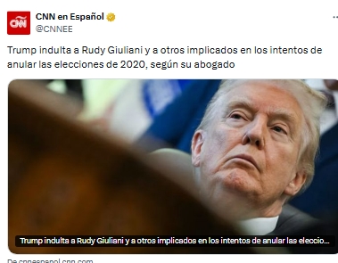 El presidente de Estados Unidos, Donald Trump, otorgó este fin de semana un indulto total, completo e incondicional a más de 70 personas, entre ellas destacados colaboradores como Rudy Giuliani, Mark Meadows, Sidney Powell y John Eastman, acusados de participar en el intento de revertir los resultados de las elecciones presidenciales de 2020.