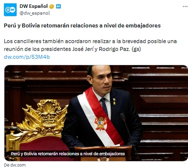 La medida pone fin a un periodo en el que ambos países mantuvieron solo encargados de negocios. El conflicto se originó cuando la presidenta peruana Dina Boluarte retiró a su embajador en La Paz en respuesta al respaldo del mandatario boliviano Luis Arce al destituido Castillo.