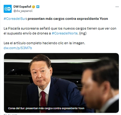 Según la investigación, Yoon habría ordenado el envío de drones a Corea del Norte en 2024 con el fin de provocar una respuesta militar de Pyongyang y usarla como pretexto para declarar la ley marcial. Los aparatos, presuntamente empleados para lanzar panfletos propagandísticos, fueron exhibidos por el régimen norcoreano tras estrellarse cerca de su capital.