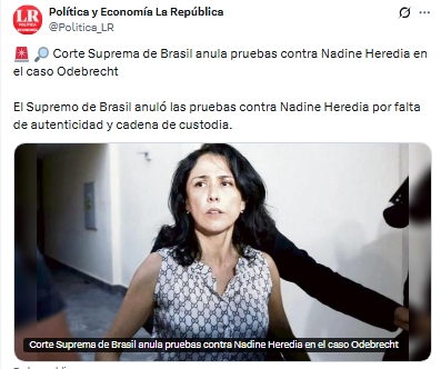 Corte Suprema de Brasil anula pruebas contra Nadine Heredia en caso Odebrecht