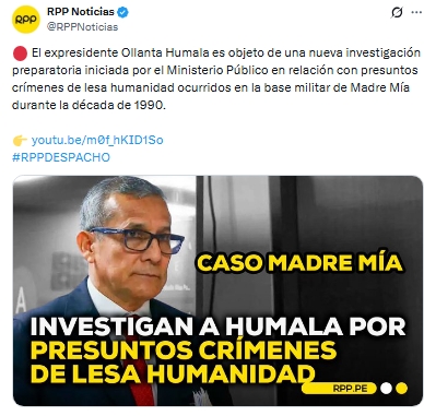 La pesquisa, a cargo de la Primera Fiscalía Penal Supraprovincial Especializada en Derechos Humanos y contra el Terrorismo, también involucra a cuatro exmilitares, incluido Amilcar Gómez. Humala cumple actualmente una condena de 15 años por lavado de activos. El caso se vincula con los asesinatos de Edgardo Isla Pérez y Nemer Acuña Silva, según una resolución del 28 de octubre citada por RPP.