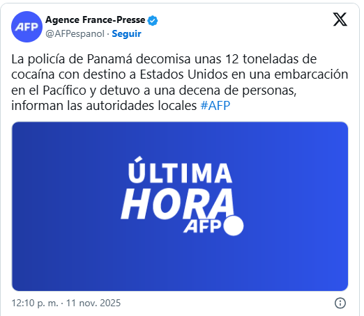 Las autoridades de Panamá informaron este martes de la incautación “histórica” de aproximadamente 12 toneladas de cocaína en una embarcación interceptada en aguas del Pacífico, la cual navegaba hacia Norteamérica y procedía de Colombia. W Radio+1