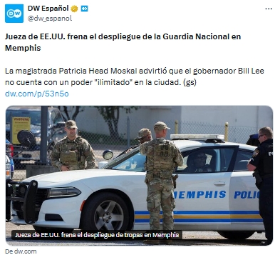 Jueza de EE.UU. frena el despliegue de tropas en Memphis