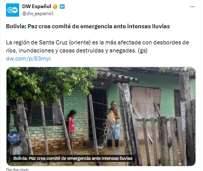 El presidente de Bolivia, Rodrigo Paz, anunció la creación de un comité de emergencia, para atender de manera inmediata los desastres provocados por las lluvias torrenciales que afectan al municipio de Samaipata, en el oriente del país.