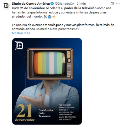 Este día también destaca la importancia de promover un uso responsable de la televisión como herramienta para informar, educar y conectar a las sociedades, subrayando su papel como uno de los medios de comunicación con mayor alcance en el mundo.