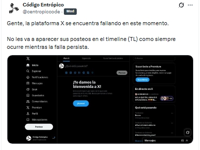 Se han registrado fallas en la plataforma X este viernes, según datos del portal Downdetector.