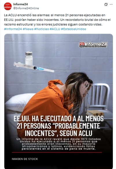 Según la investigación, estos procesos viciados por el racismo han llevado incluso a la aplicación de la pena de muerte a personas injustamente condenadas. La ACLU señala que, desde 1973, al menos 21 personas probablemente inocentes han sido ejecutadas, la mayoría afroamericanos.