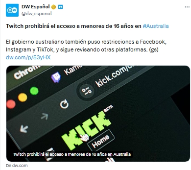 El regulador australiano informó que Twitch deberá retirar a todos los usuarios menores de 16 años cuando entren en vigor las nuevas y estrictas leyes sobre redes sociales el 10 de diciembre de 2025.