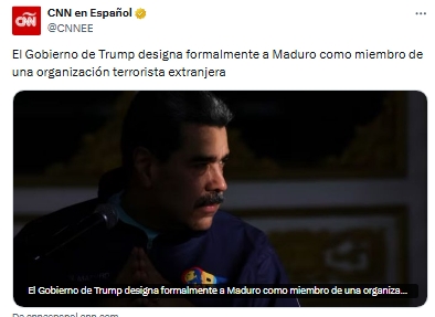 Nicolás Maduro, y altos cargos del Gobierno de Venezuela, fueron designados oficialmente por Estados Unidos como integrantes de una organización terrorista internacional.