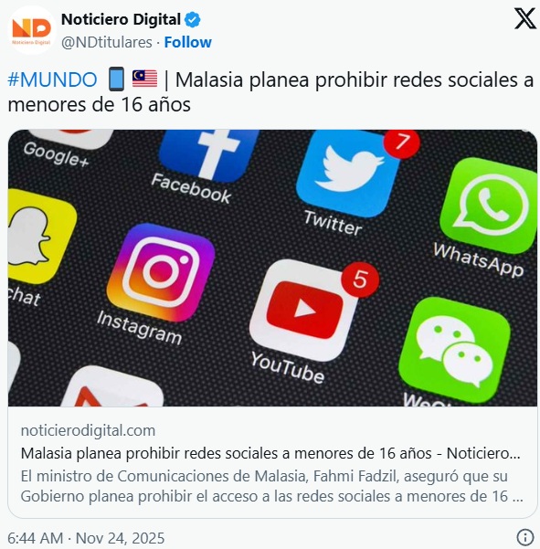 El ministro de Comunicaciones de Malasia, Fahmi Fadzil, aseguró que su Gobierno planea prohibir el acceso a las redes sociales a menores de 16 años a partir de 2026, siguiendo la línea marcada por otros países como Australia.