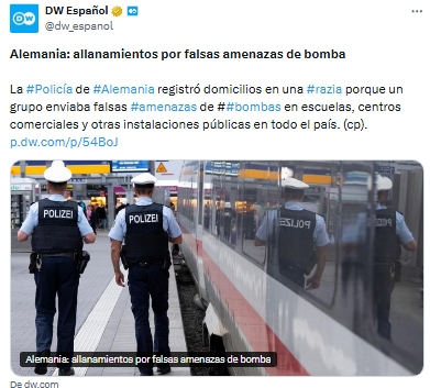 La Fiscalía General de Fráncfort del Meno y la Oficina Federal de Investigación Criminal de Alemania (BKA), realizaron registros en los domicilios de cuatro presuntos miembros de un grupo que enviaba por correo electrónico falsas amenazas de bomba a nivel nacional, informó la Policía germana.