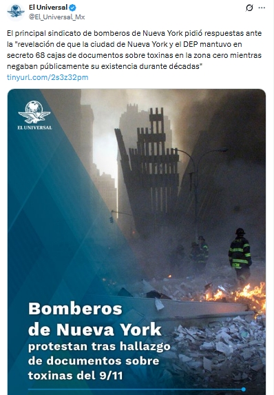 El principal sindicato de bomberos de Nueva York protestó este lunes tras el hallazgo de decenas de cajas de documentos de las autoridades locales sobre las toxinas relacionadas con el derrumbamiento de las Torres Gemelas tras los ataques terroristas del 11 de septiembre de 2001.