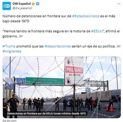 Según el comunicado, este total representa una reducción del 87% respecto al promedio de los últimos cuatro años fiscales, y fue calificado por el organismo como muestra de “la frontera más segura en la historia de Estados Unidos”.
