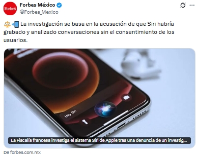 Francia investiga a Apple por presunta recopilación masiva de grabaciones de voz de usuarios de Siri