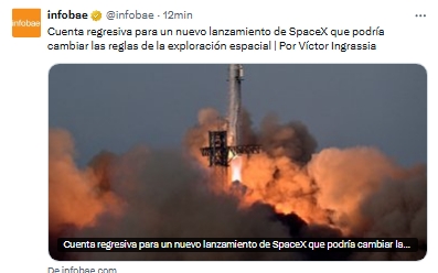 El lanzamiento está programado para las 19:15 hora local. El objetivo es que Starship alcance la órbita, ejecute una reentrada controlada y regrese a la Tierra en un solo vuelo.