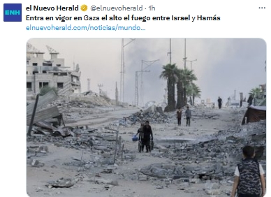Entra en vigor el alto el fuego entre Hamás e Israel tras más de dos años de guerra