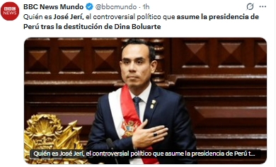 De acuerdo con la Constitución peruana, en ausencia de vicepresidentes como era el caso de Boluarte, quien había asumido el poder tras la destitución de Pedro Castillo en 2022, la sucesión presidencial recae en el titular del Congreso.