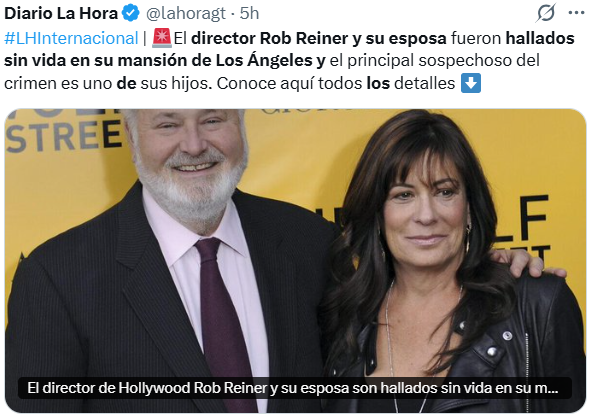 El legendario director Rob Reiner y su esposa, Michele Singer Reiner, fueron hallados muertos con heridas de arma blanca en su casa de Brentwood, Los Ángeles, en un caso que la policía investiga como homicidio.