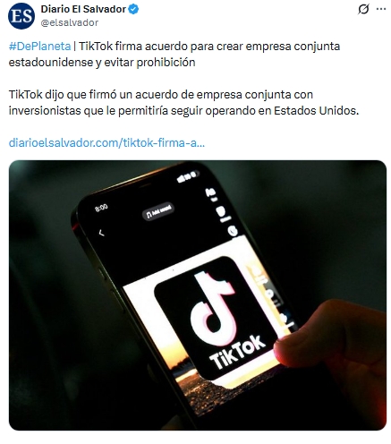 La red social TikTok firmó un acuerdo de empresa conjunta con un grupo de inversionistas que le permitirá seguir operando en Estados Unidos, pese a las amenazas de prohibición por su vínculo con China, informaron este jueves medios estadounidenses.