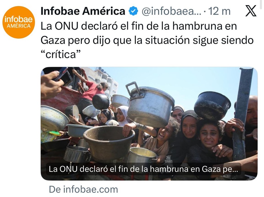 La Organización de las Naciones Unidas (ONU) anunció este viernes el fin de la hambruna en Gaza, aunque advirtió que la situación humanitaria sigue siendo "crítica“ y la mayoría de la población continúa expuesta a altos niveles de inseguridad alimentaria.