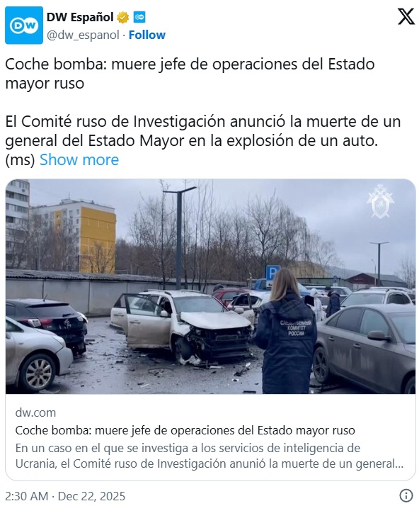 Coche bomba: muere jefe de operaciones del Estado mayor ruso