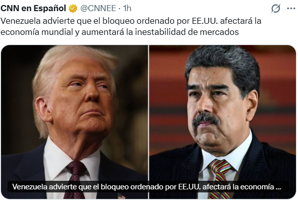 El Gobierno de Venezuela advirtió este lunes que el bloqueo naval ordenado por Estados Unidos contra buques petroleros sancionados que entren o salgan del país afectará el suministro de energía y podría llevar al mundo hacia un escenario de confrontación global.