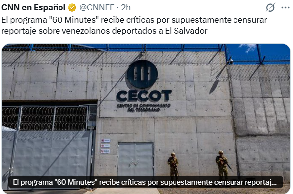 El reconocido programa periodístico estadounidense 60 Minutes enfrenta críticas luego de que se le acusara de censurar un reportaje relacionado con la deportación de ciudadanos venezolanos hacia El Salvador.
