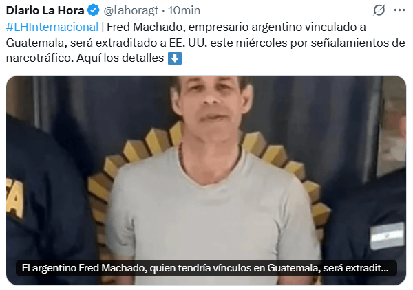 El empresario argentino Federico Andrés “Fred” Machado, vinculado al sector de la aviación y señalado por presuntos lazos con figuras políticas en Guatemala, será extraditado a Estados Unidos este miércoles 5 de noviembre de 2025, según informaron medios locales en Argentina.