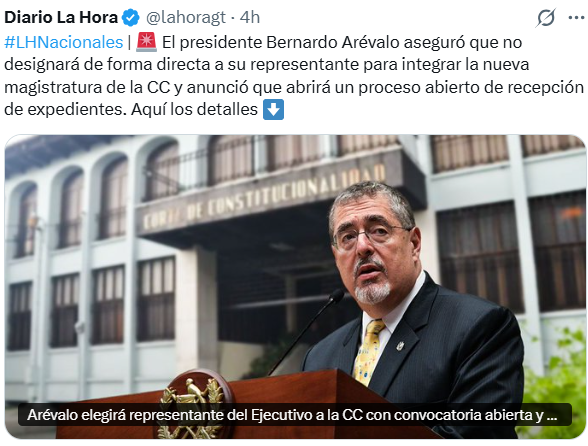 El presidente Bernardo Arévalo aseguró este jueves que no designará de forma directa a su representante para integrar la nueva magistratura de la Corte de Constitucionalidad (CC), y anunció que se abrirá un proceso público de recepción de expedientes.