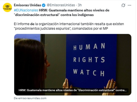 HRW: Guatemala mantiene altos niveles de "discriminación estructural" contra los indígenas