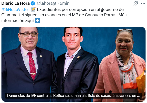En mayo de 2024, pocos meses después de que Giammattei dejara el cargo, la fiscal general aseguró que la institución “investiga absolutamente todas las denuncias que son puestas de conocimiento del MP” y subrayó que “todo lo que aquí se presenta se investigará”.
