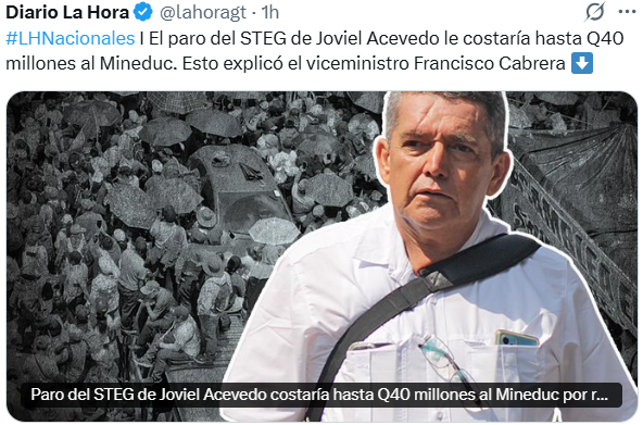 El viceministro Técnico de Educación, Francisco Cabrera, anunció que el Ministerio de Educación (Mineduc) podría destinar Q40 millones a programas de continuidad educativa con el objetivo de recuperar los aprendizajes de los estudiantes afectados por el reciente paro de actividades del Sindicato de Trabajadores de la Educación de Guatemala (STEG), liderado por Joviel Acevedo.
