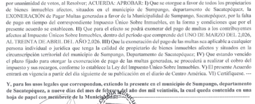 MUNICIPALIDAD DE SUMPANGO, DEPARTAMENTO DE SACATEPÉQUEZ