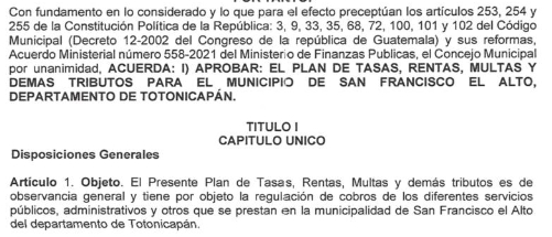 MUNICIPALIDAD DE SAN FRANCISCO EL ALTO, DEPARTAMENTO DE TOTONICAPÁN