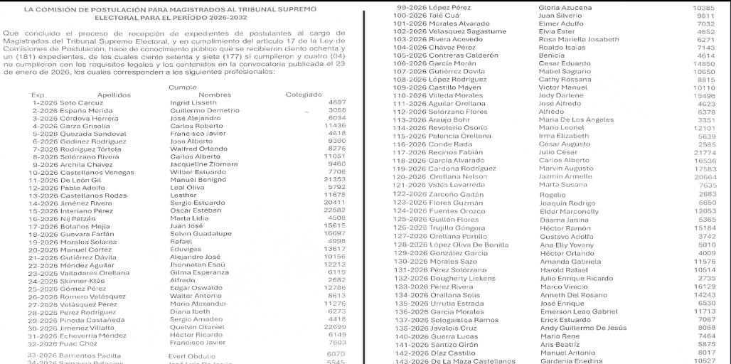 COMISIÓN DE POSTULACIÓN PARA MAGISTRADOS AL TRIBUNAL SUPREMO ELECTORAL PARA EL PERÍODO 2026-2032