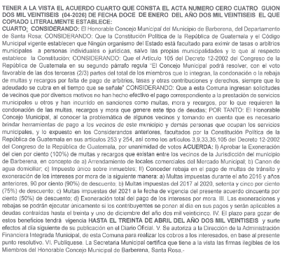 MUNICIPALIDAD DE BARBERENA, DEPARTAMENTO DE SANTA ROSA
