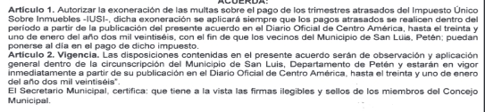 MUNICIPALIDAD DE SAN LUIS, DEPARTAMENTO DE PETÉN