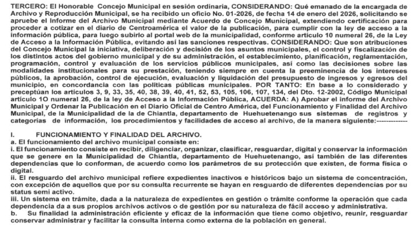 MUNICIPALIDAD DE CHIANTLA, DEPARTAMENTO DE HUEHUETENANGO