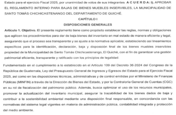 MUNICIPALIDAD DE SANTO TOMÁS CHICHICASTENANGO, DEPARTAMENTO DEL QUICHÉACTA NÚMERO 88-2025, PUNTO QUINTO