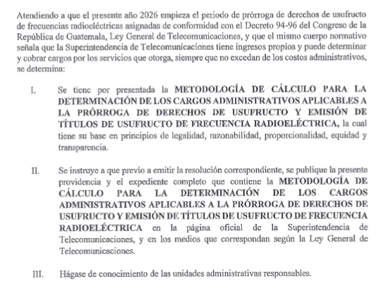 DETERMINACIÓN DE CARGOS ADMINISTRATIVOS PARA LA PRÓRROGA DE DERECHOS DE USUFRUCTO DE FRECUENCIAS RADIOELÉCTRICAS Y EMISIÓN DE TÍTULOS DE USUFRUCTO
