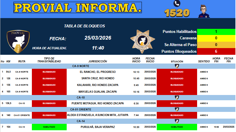 Se registran 6 puntos bloqueados